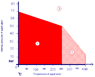PT 图仅提供设计指导 – 没有压力/温度限制,具体参考 KLINGER expert 垫片设计软件。